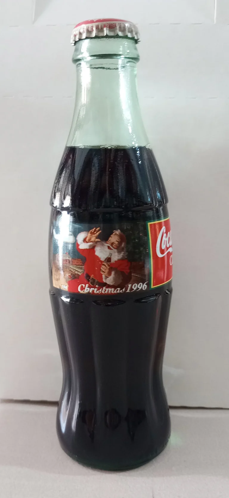 | Coca-Cola, Coca-Cola Vintage, Colecionáveis Coca-Cola, Colecionismo, Edições Limitadas, Embalagens de Natal, Garrafa Coca-Cola Natal 1996, Garrafa Colecionável, Garrafas Temáticas Coca-Cola, História da Coca-Cola, Marketing Nostálgico, Memorabilia Natalina, Natal 1996, Nostalgia Anos 90, Papai Noel Coca-Cola |