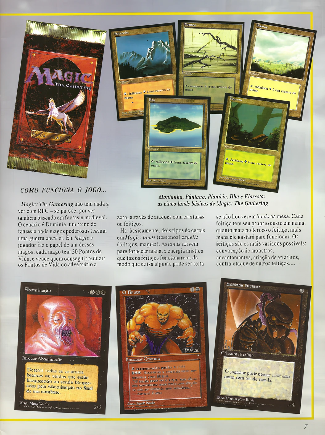 Criado em 1993 por Richard Garfield e chegando ao Brasil dois anos depois de 1995, foi o primeiro jogo de cartas colecionáveis criado (TCG, Trading Card Game). A matéria apresenta a introdução ao jogo, explicando a mecânica e os meios de se obter as cartas. Os jogadores utilizam baralhos construídos de acordo com o modo de cada um, avançando no jogo para tentar vencer o baralho adversário. Expandindo desde a época de seu lançamento até hoje, conta com aproximadamente 12 milhões de jogadores ao redor do mundo atualmente.