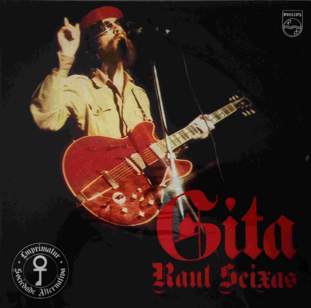 - Gita (1974): considerado o maior sucesso de sua carreira, vendeu 143 mil cópias e rendeu ao cantor o primeiro disco de ouro. Regressado do exílio, Raul aparece na capa vestido de guerrilheiro, empunhando uma guitarra vermelha — uma provocação direta à ditadura militar que o havia forçado a viver nos Estados Unidos. O disco reúne alguns de seus hinos mais conhecidos, como “Gita” (inspirada no Bhagavad Gita, texto sagrado hindu de mais de 6.000 anos), “Sociedade Alternativa” (inspirada nas ideias de Aleister Crowley) e “Medo da Chuva”.
